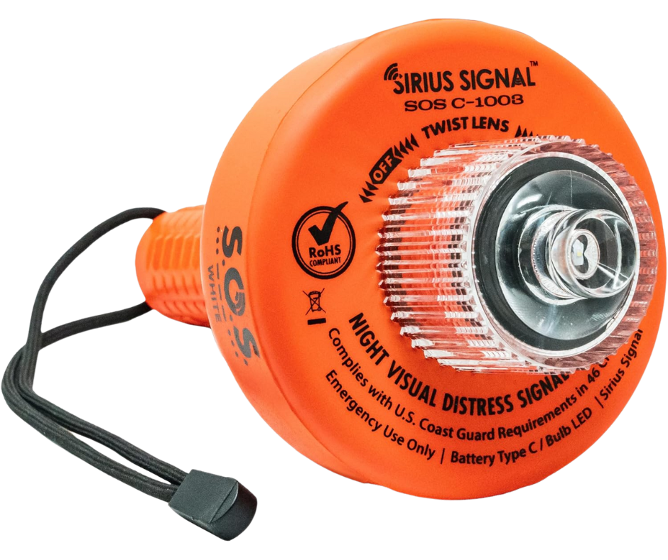- Flashes US Coast Guard spec SOS signal for up to 60 hours, many times longer than USCG requirements; batteries included